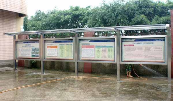 宣傳欄需具有一定的耐用性和延展性,不銹鋼經過拋光可擁有更美觀的金屬色澤,還可使不銹鋼宣傳欄有更長的使用壽命,一般不銹鋼材質的宣傳欄可以使用超過15年;